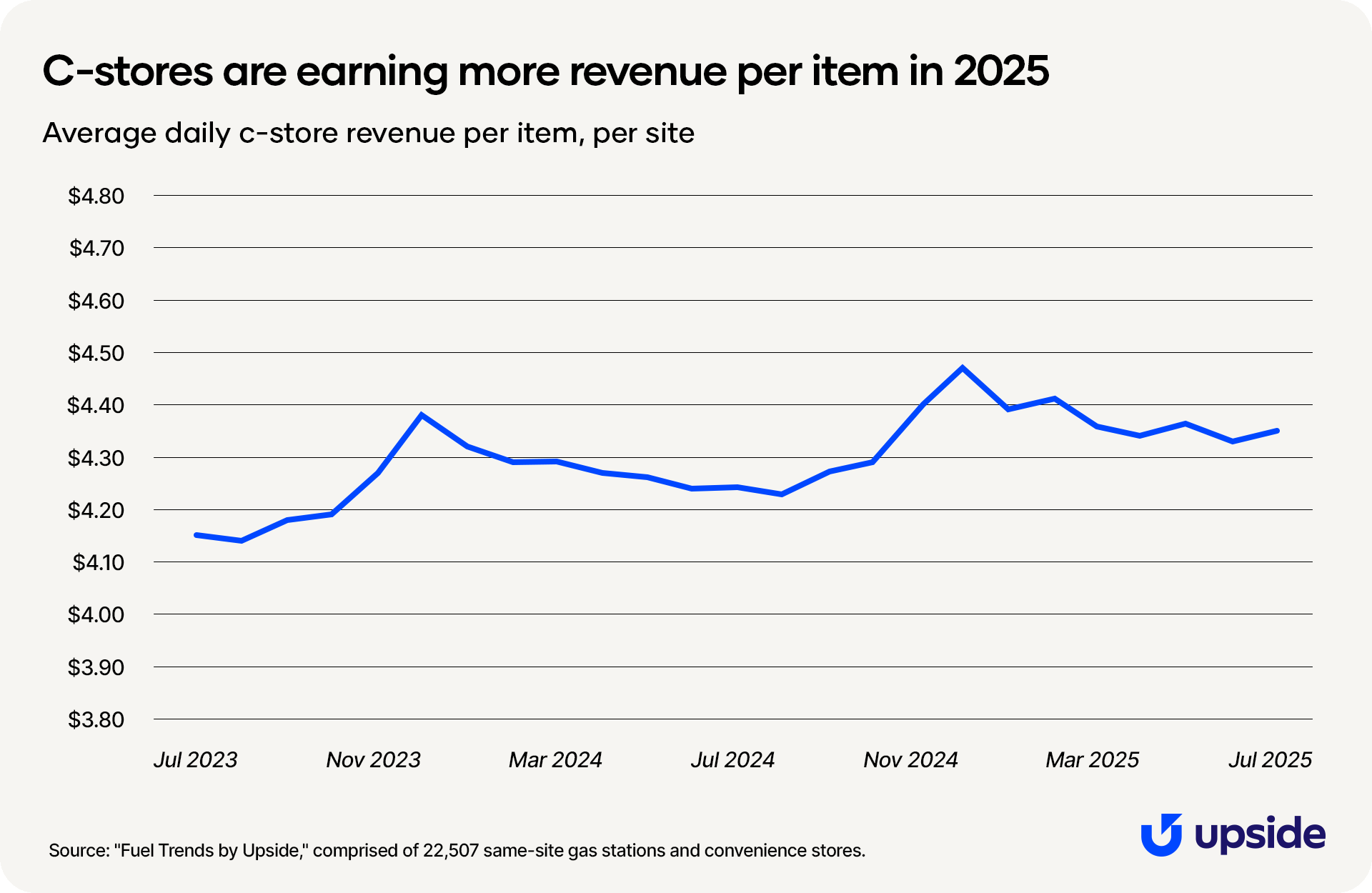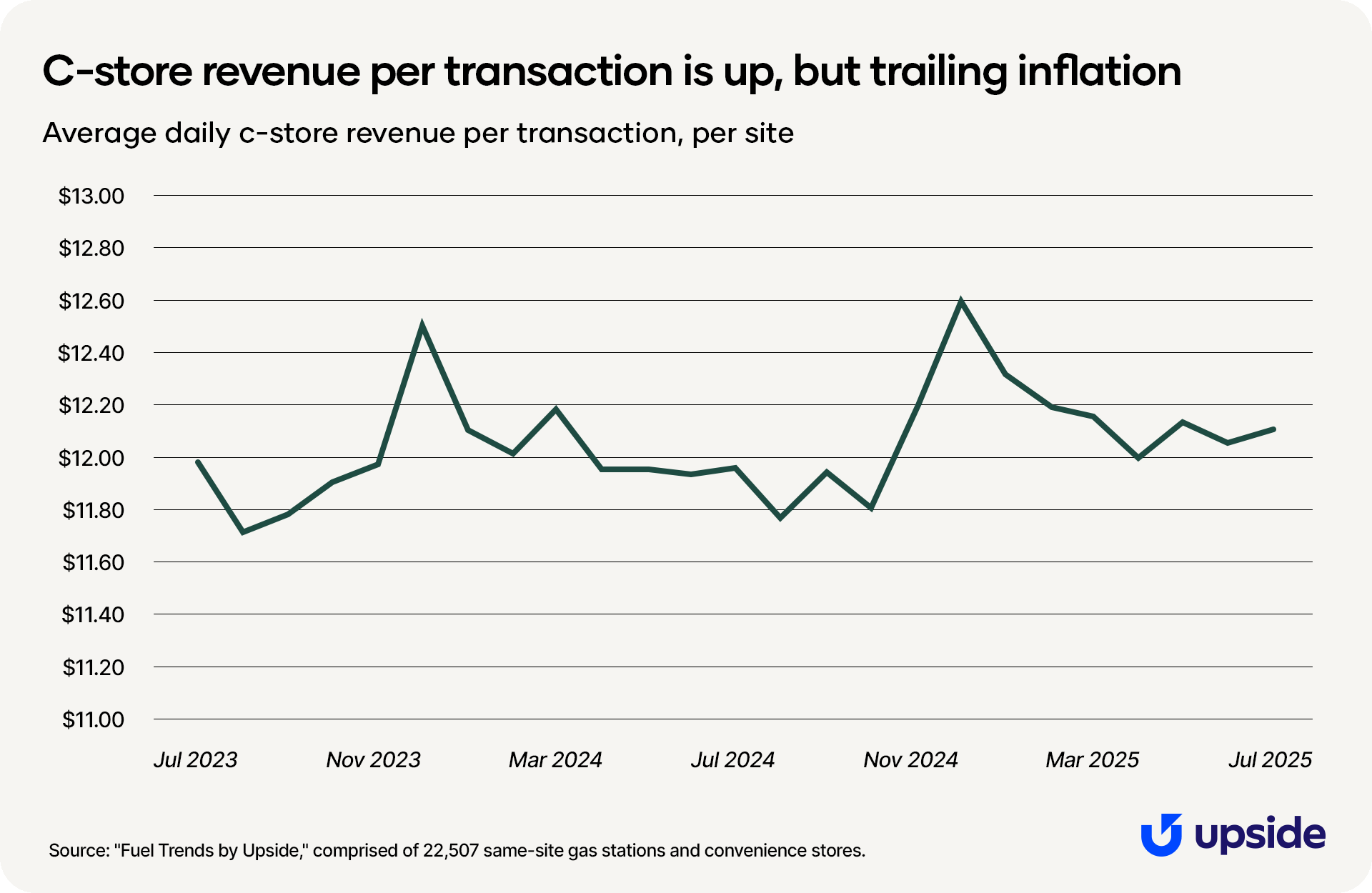 With this one-month uptick in convenience traffic, we wanted to dig more into the average transaction at a typical c-store. In this section, we’ll be evaluating year-over-year changes, comparing the first seven months of 2025 to the same period in 2024.